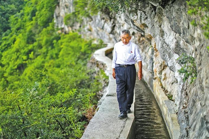 村民們親切地把水渠稱作“大發(fā)渠”。正是在老支書黃大發(fā)的帶領下,村民們鋼釬鑿、風鉆敲,硬是在峭壁懸崖間,挖出一條近10公里的“天渠”。