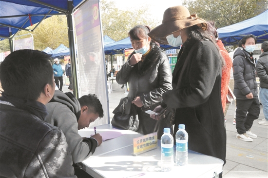 為精準(zhǔn)解決老城區(qū)低收入群體就業(yè)問題,11月16日,老城區(qū)百巷千家就業(yè)增收精準(zhǔn)對接專場招聘會在八廓商城廣場舉行。