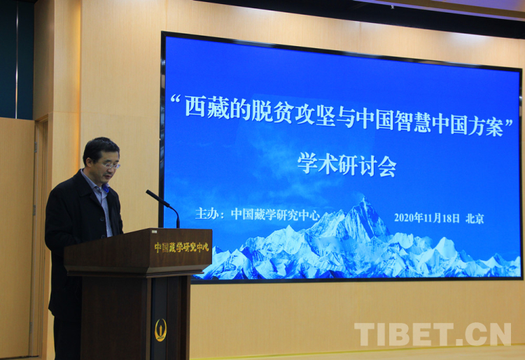 中國(guó)西藏網(wǎng)訊 11月18日,“西藏的脫貧攻堅(jiān)與中國(guó)智慧中國(guó)方案”學(xué)術(shù)研討會(huì)在中國(guó)藏學(xué)研究中心舉辦。中國(guó)藏學(xué)研究中心黨組書(shū)記陳宗榮出席會(huì)議并講話,中國(guó)藏學(xué)研究中心總干事鄭堆主持會(huì)議。來(lái)自中國(guó)社會(huì)科學(xué)院、中央民族大學(xué)、中國(guó)農(nóng)業(yè)大學(xué)、中國(guó)社會(huì)科學(xué)院大學(xué)等高校和科研機(jī)構(gòu)近60名專家學(xué)者參加了研討會(huì)。