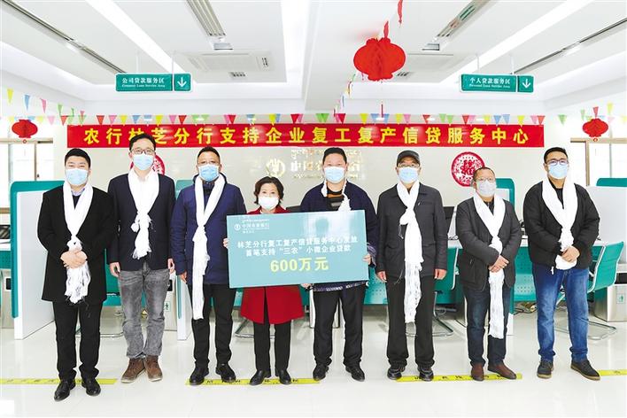 林芝分行復工復產(chǎn)信貸服務中心發(fā)放首筆支持“三農(nóng)”小微企貸款600萬元。