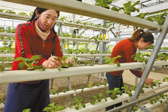 圖為園區(qū)務工人員在日光溫室內(nèi)打理蔬菜秧苗。記者 唐斌 洛桑 攝