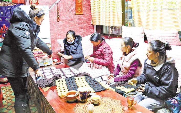 “圓夢新居”的婦女們在學(xué)習(xí)編織毛毯。記者 達(dá)珍 溫凱 攝