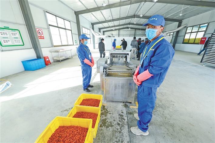 圖為日喀則市白朗縣萬畝枸杞產(chǎn)業(yè)園里的工作人員在加工枸杞。記者 格桑吉美 攝