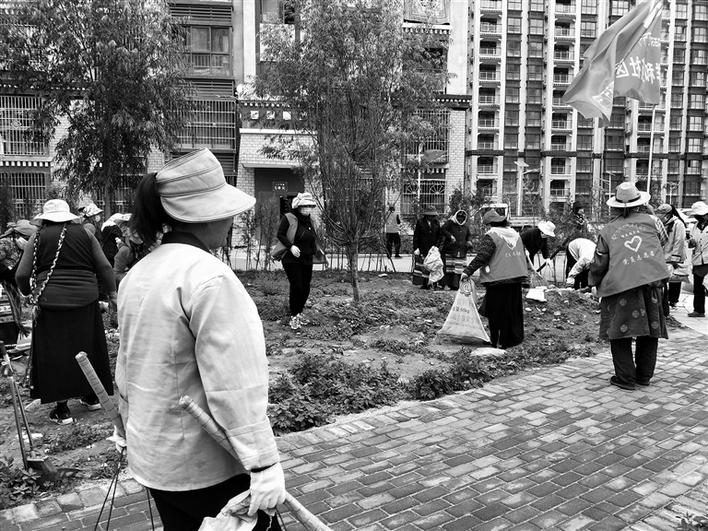 東嘎鎮(zhèn)祥和苑社區(qū)每周末以聯(lián)戶為單位,整治衛(wèi)生環(huán)境,摒棄“臟、亂、差”,營造良好的社區(qū)環(huán)境。“每個周末,我都會參加志愿服務(wù)活動,主要是清理社區(qū)公共區(qū)域,有時也會去清理河道,希望可以為社區(qū)建設(shè)出份力?!苯衲?2歲的老人卓瑪告訴記者。