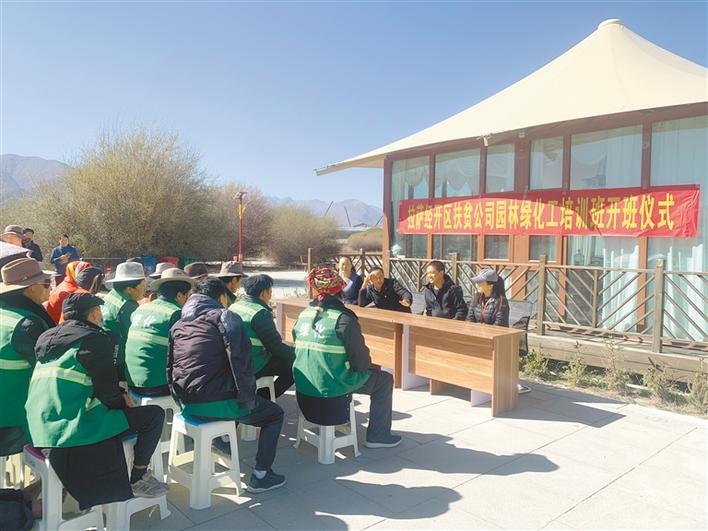 圖為拉薩經(jīng)開區(qū)產(chǎn)業(yè)扶貧投資發(fā)展有限公司園林綠化工培訓(xùn)班開班儀式現(xiàn)場。記者 劉斯宇 攝