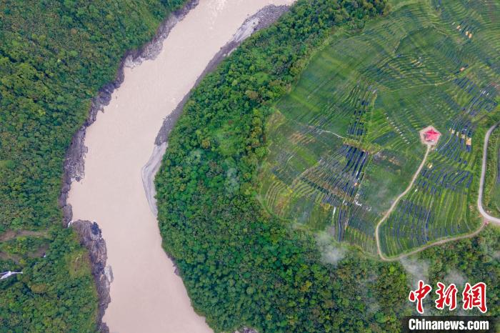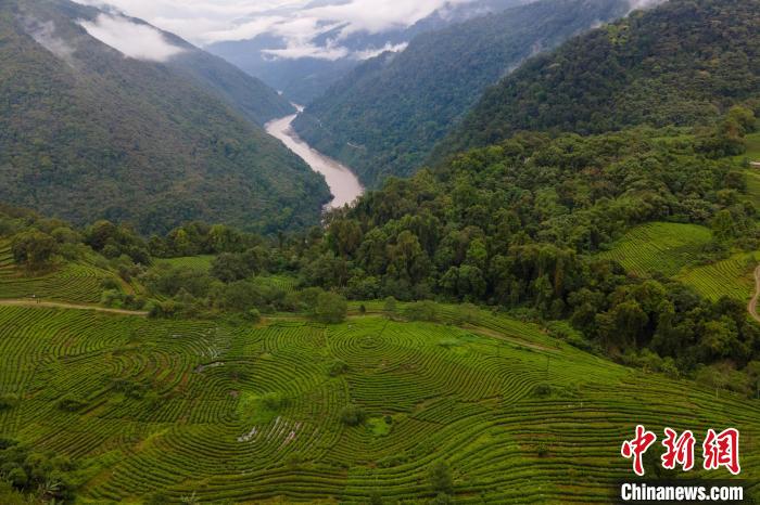圖為西藏墨脫縣雅魯藏布江邊的茶園,如今茶葉已成為墨脫縣的特色產(chǎn)業(yè)?!〗w波 攝