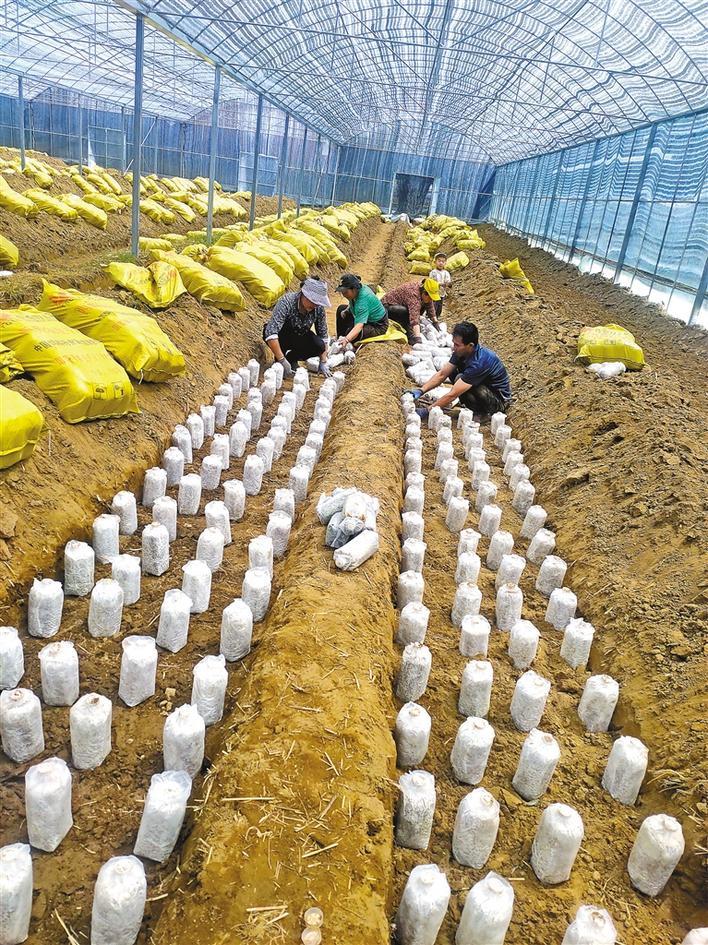 圖為紅太陽家庭農(nóng)場工作人員在采摘靈芝。 記者 措姆 攝