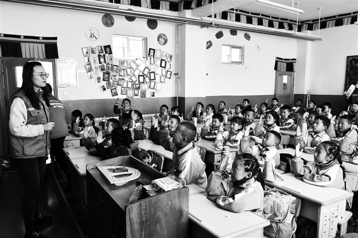 國(guó)網(wǎng)拉薩供電公司共產(chǎn)黨員服務(wù)隊(duì)入校園進(jìn)行電力知識(shí)宣講。國(guó)網(wǎng)拉薩供電公司供圖