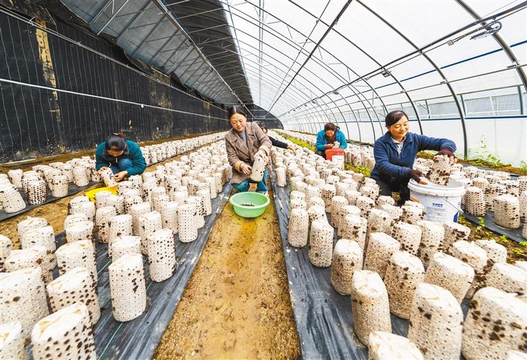 圖為當(dāng)?shù)剞r(nóng)民在木耳種植基地栽種木耳。記者 白娟 張斌 格桑吉美 攝