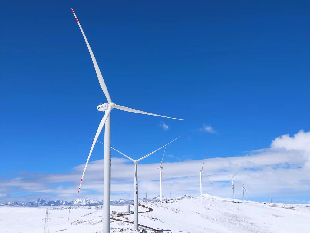 西藏一超高海拔風(fēng)電項目——西藏措美哲古分散式風(fēng)電場的首批機組12月22日并網(wǎng)發(fā)電。