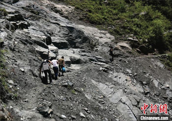 圖為農(nóng)行墨脫縣支行員工徒步進行流動金融服務(wù)?!∧摽h支行供圖