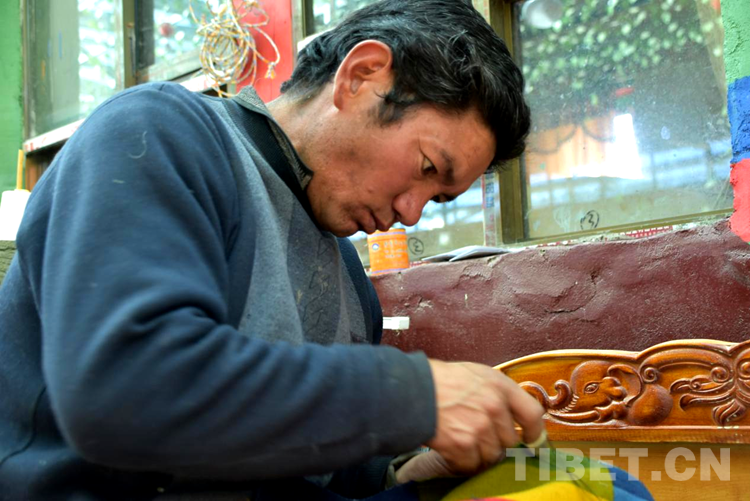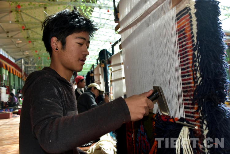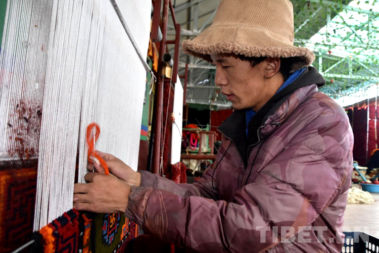“剛到合作社每天工資160元,一個月下來就有小四千,一年收入妥妥的超3萬元。”說話間,巴頓也沒有歇下手中的活計。穿桿結(jié)扣,勤勞的雙手一直忙碌著,在合作社6年多,他已經(jīng)比較熟練地掌握了卡墊織法、色彩以及紋樣。如今,卡墊接活都是以承包方式,往往供不應(yīng)求,一家人住在裝修一新的藏式小院里,妻子現(xiàn)在也在參加合作社新員工培訓(xùn),四個孩子都進了公立學(xué)校讀書,享受了義務(wù)教育免費“三包”政策。