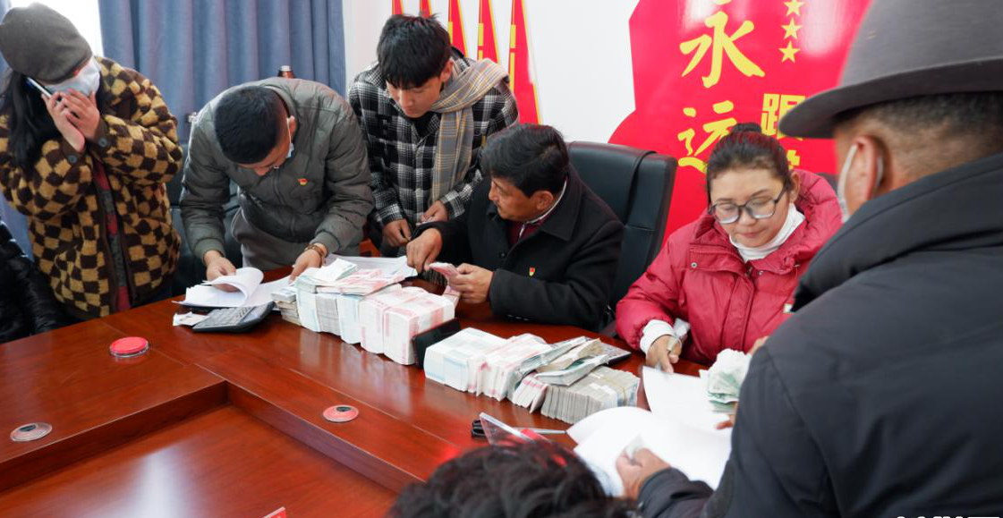 2月23日,維巴村維巴組、曲色組股份經(jīng)濟合作社分紅現(xiàn)場。[詳細] -