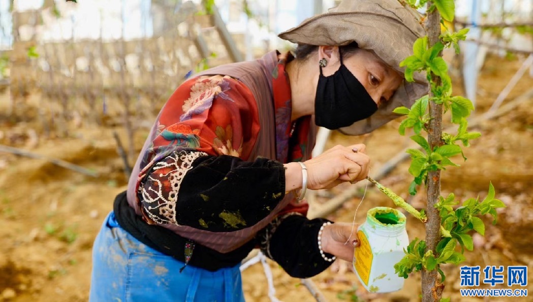 一棟溫暖的溫室大棚內(nèi),工人們正跟著自己的師傅德吉學(xué)習(xí)如何給車(chē)?yán)遄訕?shù)松土施肥、新梢摘心、控溫澆水、人工授粉,以確保今年順利掛果。近日,位于西藏拉薩市尼木縣吞彌現(xiàn)代農(nóng)業(yè)產(chǎn)業(yè)園區(qū)的車(chē)?yán)遄哟笈锢锍尸F(xiàn)出一片繁忙景象。