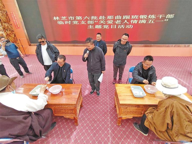 近日,林芝赴那曲跟班鍛煉小組臨時(shí)黨支部組織黨員干部前往色尼區(qū)特困人員集中供養(yǎng)中心開展關(guān)愛老人主題黨日活動(dòng)?;顒?dòng)中,黨員干部為老人們發(fā)放慰問品、表演文藝節(jié)目,同老人們拉家常,幫老人們打掃衛(wèi)生。此次活動(dòng)既是一次志愿活動(dòng),也是一次黨性鍛煉,充分展現(xiàn)了黨員干部踐行為民服務(wù)、奮發(fā)有為的時(shí)代風(fēng)采,增進(jìn)了干群關(guān)系。