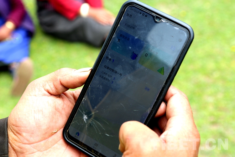 圖為牧民群眾使用手機(jī)便可知悉自家牦牛動(dòng)態(tài) 攝影:王佳豪