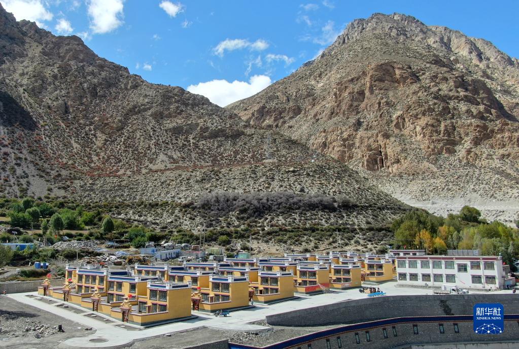這是2019年9月21日拍攝的西藏山南市洛扎縣洛扎鎮(zhèn)新建成的次麥社區(qū)邊境小康村(無(wú)人機(jī)照片)。新華社記者 晉美多吉 攝