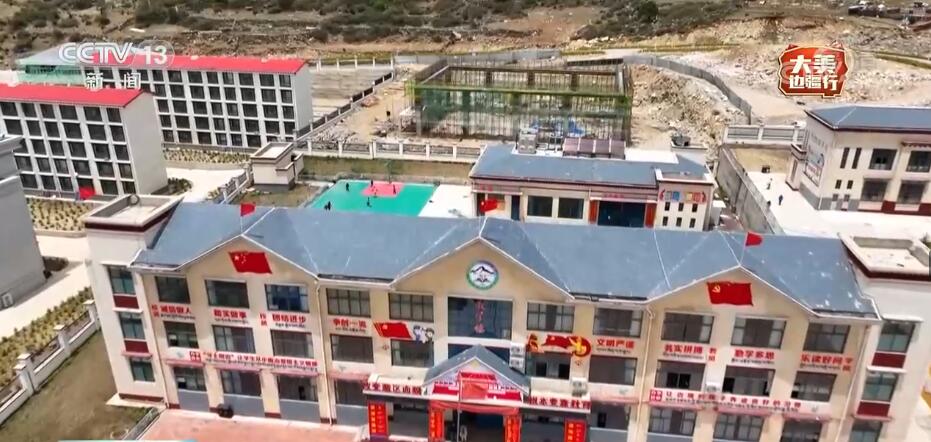 鏡頭中西藏日喀則市定日縣絨轄鄉(xiāng)中心小學(xué)的學(xué)生們正在跳著特色的校園廣播操。絨轄鄉(xiāng)中心小學(xué)是全鄉(xiāng)最好的建筑,在這里,學(xué)生們可以享受?chē)?guó)家三包經(jīng)費(fèi)和每月111元的營(yíng)養(yǎng)改善費(fèi)。2016年,國(guó)家投資近5.9億元為絨轄鄉(xiāng)修路,過(guò)去到縣城騎馬需要兩天的路程,現(xiàn)在開(kāi)車(chē)只需要半天。此外,國(guó)家還投資1.2億元,完成了對(duì)全鄉(xiāng)205戶(hù)民房的改造升級(jí)。