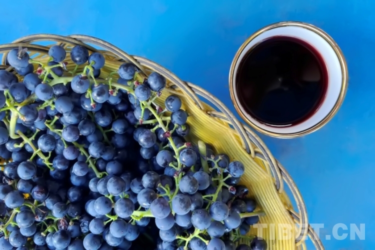 圖為次仁鄧培家里種的葡萄和釀制的葡萄酒 攝影:王茜