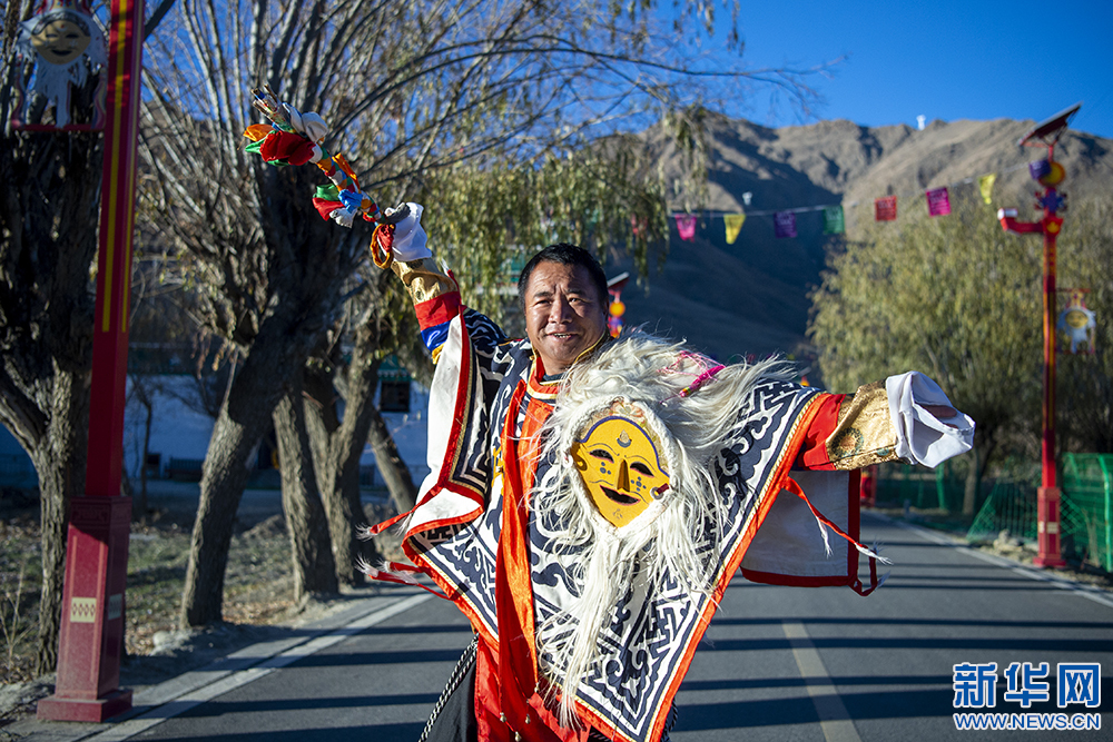 12月9日,雅礱扎西雪巴藏戲傳承人尼瑪次仁在表演藏戲。新華網(wǎng) 旦增努布 攝