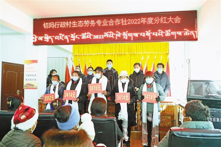 近日,亞東縣下亞東鄉(xiāng)切瑪村生態(tài)勞務(wù)專業(yè)合作社為122名群眾現(xiàn)場分紅20萬元。接過那份屬于自己的紅利后,大家激動不已,數(shù)著手里的現(xiàn)金,笑得合不攏嘴。該合作社于2020年成立,主要以林下資源和苗木培育種植與銷售、森林撫育、勞務(wù)輸出、生態(tài)環(huán)保服務(wù)等為主營業(yè)務(wù)。