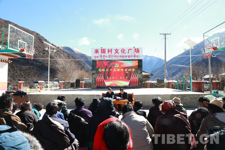 圖為工布江達縣委書記王啟展在米瑞村宣講黨的二十大精神