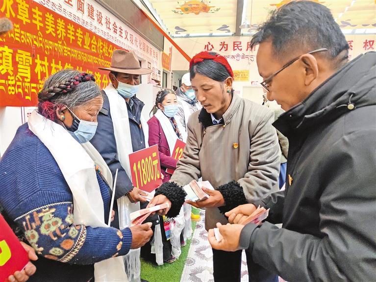 近日,日喀則市崗巴縣雪村水草豐美養(yǎng)羊?qū)I(yè)合作社舉行2022年度合作社分紅儀式。