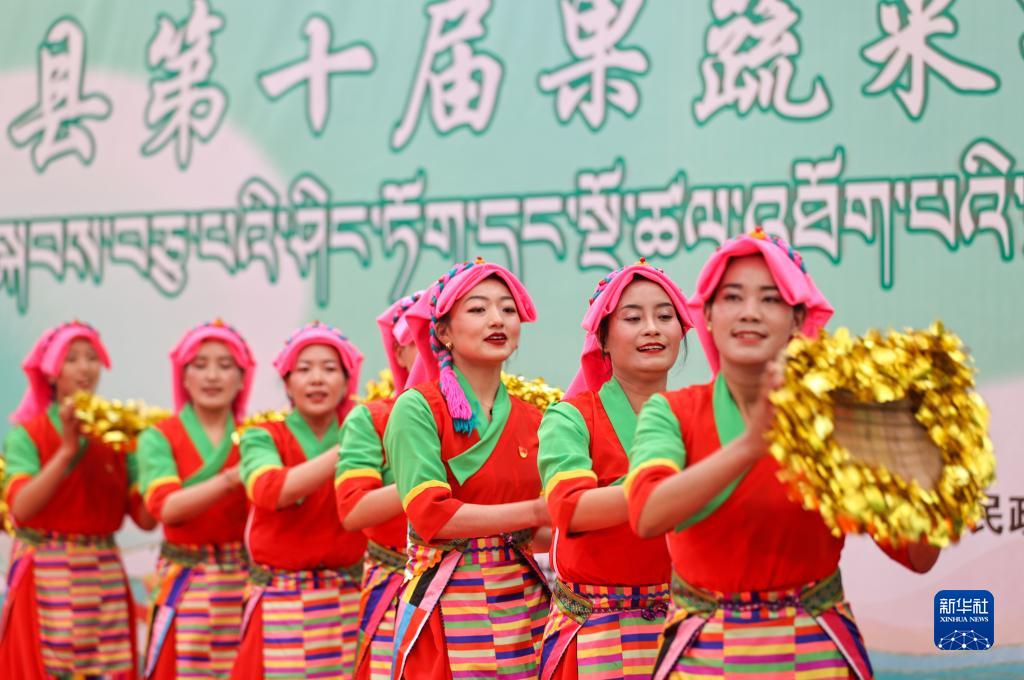 5月28日,居民在第十屆白朗果蔬采摘節(jié)上表演節(jié)目。新華社記者 姜帆 攝