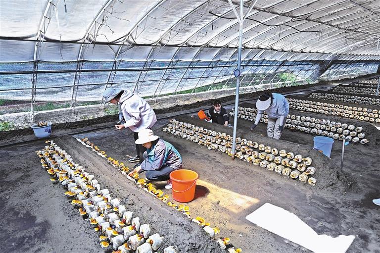 圖為達(dá)孜現(xiàn)代農(nóng)業(yè)產(chǎn)業(yè)園的技術(shù)人員在大棚內(nèi)查看靈芝長勢。 記者 旦增蘭澤 攝