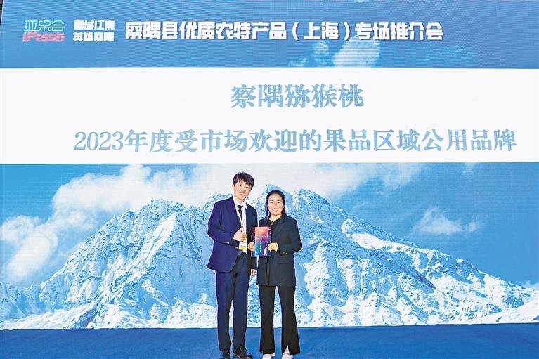 察隅獼猴桃獲得第十六屆iFresh亞洲果蔬產(chǎn)業(yè)博覽會(huì)“2023年度受市場(chǎng)歡迎的果品區(qū)域公用品牌”的榮譽(yù)。 圖片由記者 謝筱純 王珊 攝