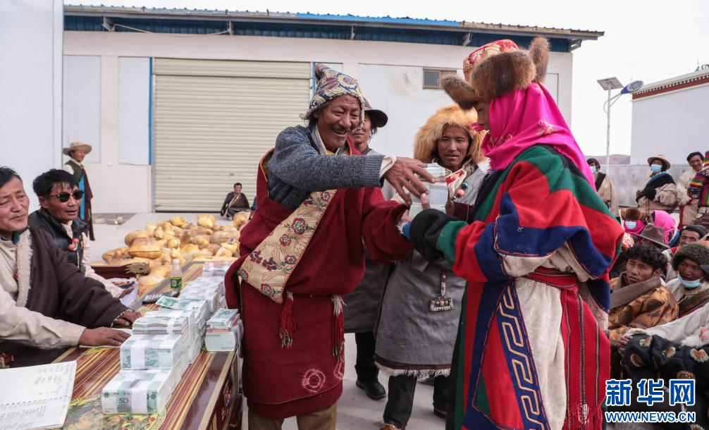 合作社社員領到現(xiàn)金分紅(11月28日攝)。新華社發(fā)(索朗仁青 攝)