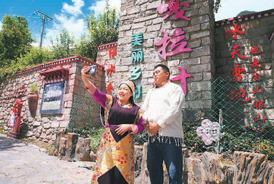 村民巴珍家的藏式小樓,院內(nèi)鮮花簇簇、室內(nèi)溫暖如春,二樓的3個房間租給旅游企業(yè)用作客房?!耙荒攴孔馐杖胗?萬多元,我在旅游公司打工,月工資4000多元,一年收入七八萬元,關鍵是工作生活都在自己村里,簡直是太方便了。”巴珍很滿意現(xiàn)在的生活。旦增達杰介紹,光房屋租金一項,村民戶均年增收3萬多元。