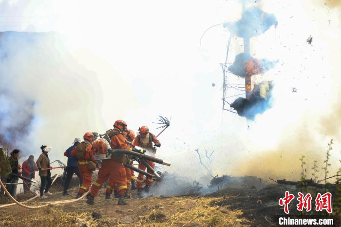 演練現(xiàn)場,森林消防進行滅火。昌都市森林消防支隊 供圖