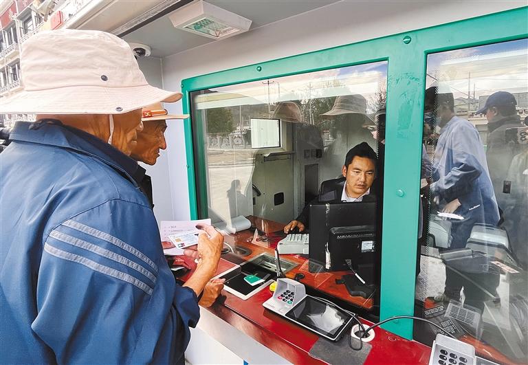 工作人員為老人辦理業(yè)務。記者 旦增藍澤 攝