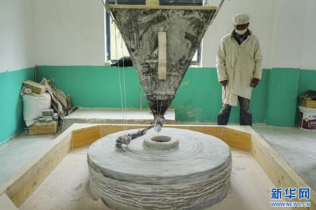 圖為村民正在磨青稞(9月2日攝)。新華網(wǎng)發(fā) 文翔宇攝