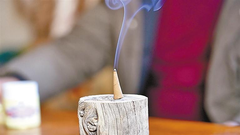 點(diǎn)燃的塔形藏香。
