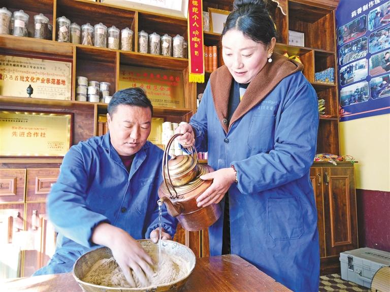 晨曦微露,拉薩市墨竹工卡縣門巴鄉(xiāng)仁多崗村籠罩在一片靜謐之中。此時(shí),記者走進(jìn)直孔熱色婦女藏藥香加工合作社,一股獨(dú)特的藏香氣息便撲面而來,裊裊娜娜地縈繞在空氣中,仿佛在訴說著這個(gè)地方制作藏香增收致富的故事。