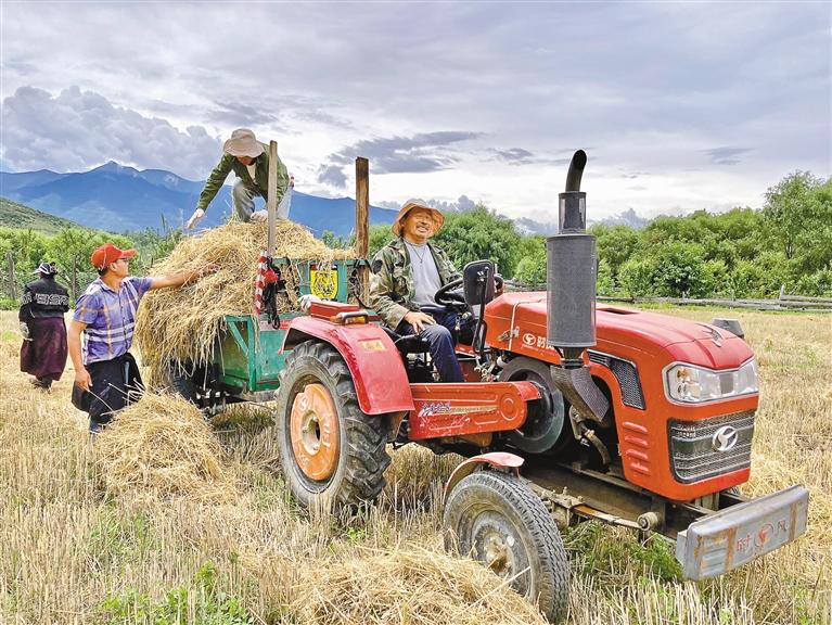 村民在收麥稈。黃海芬 攝