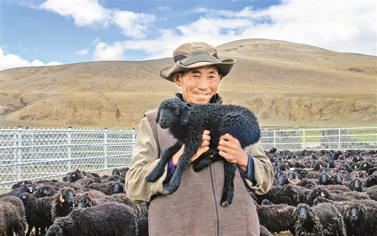 七月,在平均海拔5000多米的日喀則市崗巴縣孔瑪鄉(xiāng),空氣中依然透著絲絲涼意。一聲聲“咩咩”的聲音打破了草原的寧靜。一只剛出生的黑色小羊羔,裹著一層透明的胎衣,烏黑油亮,臥在地上直打顫?!坝质且恢唤】档男⊙颍】磥斫衲杲痈嵊坠ぷ鲿軋A滿?!笨赚斷l(xiāng)黑綿羊養(yǎng)殖專業(yè)合作社理事長拉貴抱起小羊,臉上洋溢著喜悅。