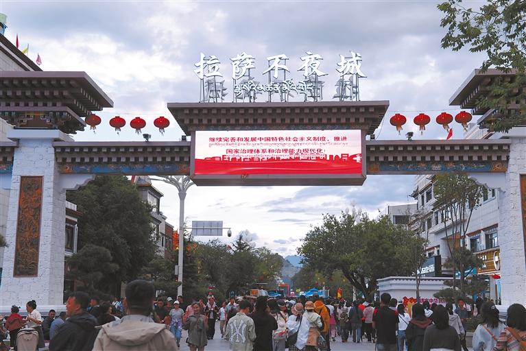 開街首日,藏式燈籠與LED光帶將整條街道裝點(diǎn)得宛如銀河落地,標(biāo)志著拉薩正式邁入“全域全時(shí)旅游”新時(shí)代。