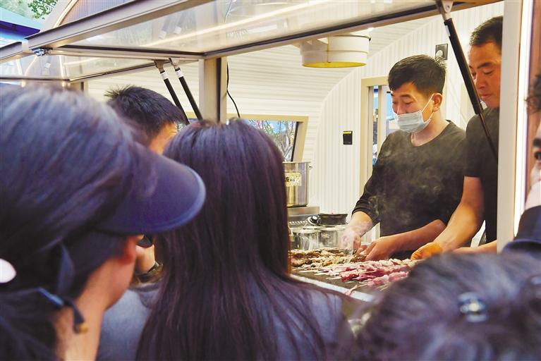 小吃攤販正在制作餐食。記者 索朗旺久 攝