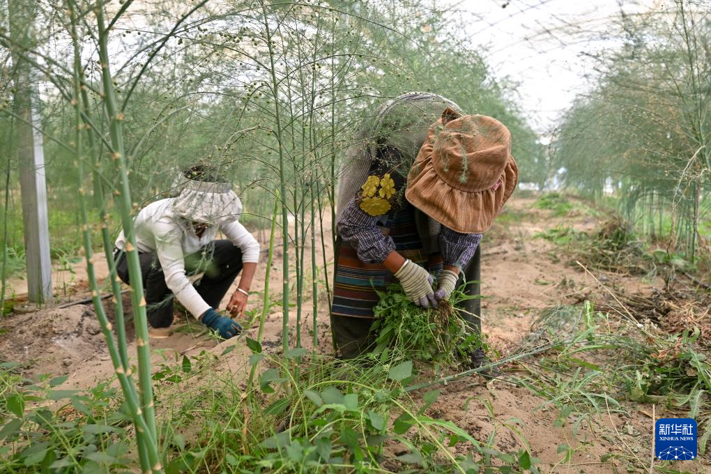 7月19日,西藏扎囊縣綠之源現(xiàn)代農(nóng)業(yè)科技股份有限公司的員工在有機蘆筍大棚內(nèi)手工除草。新華社記者 李鑫 攝