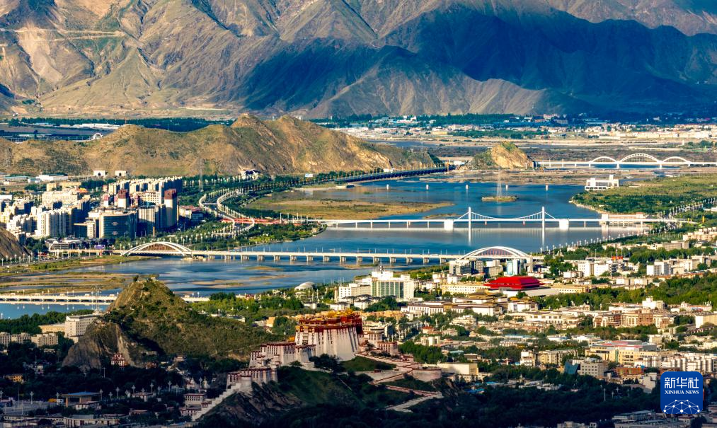 這是7月30日拍攝的拉薩河風(fēng)光,由近及遠分別是連心橋、柳梧大橋、和美橋和青藏鐵路拉薩河特大橋。新華社記者 姜帆 攝