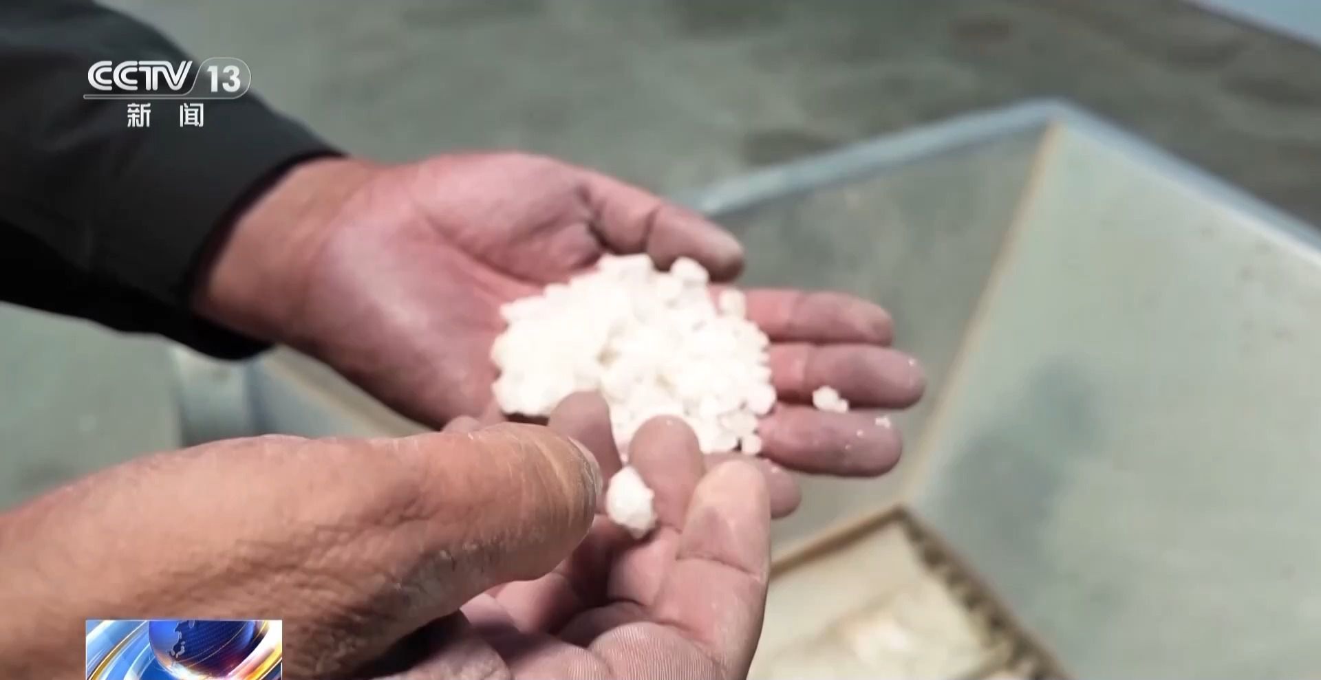 阿里地區(qū)革吉縣擦咔鄉(xiāng)黨委書(shū)記 貢覺(jué)次仁:這個(gè)就是足療鹽的原料,除了鹽以外還有很多藏藥,將原料先做初步的粉碎,然后進(jìn)行混合,最后磨成跟面粉一樣。