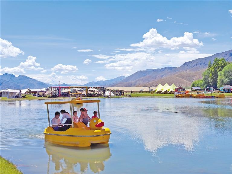 楚貴林卡位于日喀則市桑珠孜區(qū)東嘎鄉(xiāng)楚貴村。2019年初,青島援藏組規(guī)劃盤活村集體用地,打造以自然生態(tài)景觀、休閑度假旅游及異域農(nóng)耕民俗文化體驗(yàn)為主題,融合當(dāng)?shù)匚幕瘍?nèi)涵的“楚貴村生態(tài)旅游度假區(qū)”項(xiàng)目。項(xiàng)目自2022年啟動(dòng)以來(lái),隨著運(yùn)營(yíng)漸趨成熟,林卡休閑游樂(lè)設(shè)施逐年豐富。如今,這里設(shè)有咖啡休閑館、山地摩托、真人CS、游船、騎馬等多個(gè)傳統(tǒng)與現(xiàn)代結(jié)合的項(xiàng)目,受到游客青睞。