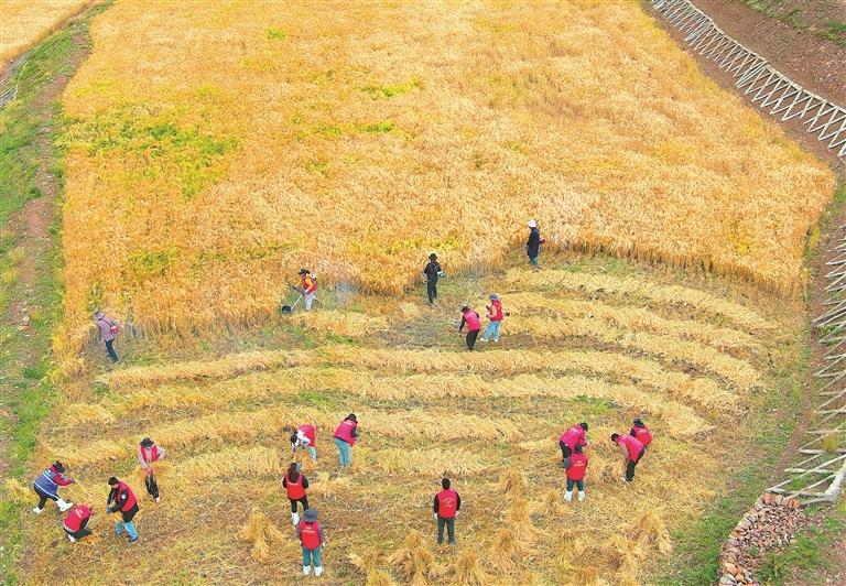 9月2日,昌都市丁青縣色扎鄉(xiāng)組織23名黨員干部組成幫扶小隊,開展秋收助農(nóng)志愿服務。在田間地頭,黨員干部們分工協(xié)作,有條不紊地進行收割、搬運、晾曬,幫助卡通村缺乏勞動力的家庭搶收農(nóng)作物。