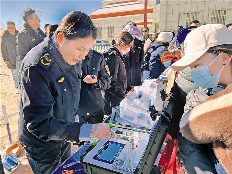 圖為阿里地區(qū)食藥檢測中心工作人員展示食品快檢。本報(bào)記者 洛桑旦增 攝