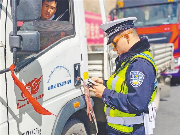 拉薩交警在國道沿線開展路檢路查工作。