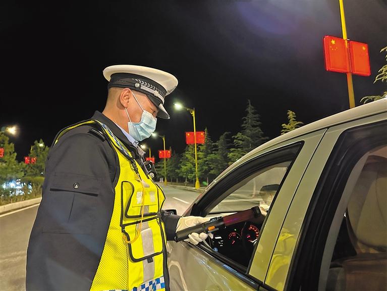 拉薩交警夜查行動(dòng)現(xiàn)場。 西藏日報(bào)記者 鹿麗娟 攝