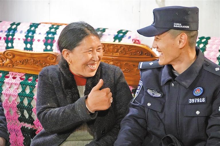 圖為轄區(qū)群眾群宗為玉麥邊境派出所民警的貼心服務(wù)點(diǎn)贊。